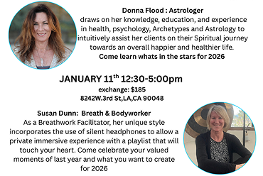 Following the astrology workshop, Susan Dunn of Elements in the Desert will guide you into a transformative breathwork experience. Using silent headphones, this private and inward-focused journey allows you to release old patterns, emotional residue, and beliefs that no longer serve you—while creating space for what comes next.