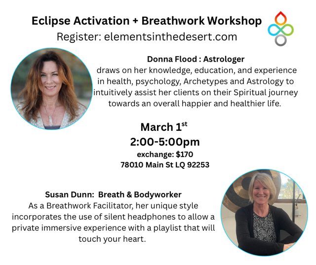 Join Susan for a 2-hour breathwork journey at GATHER Yoga & Wellness Studio in La Quinta.